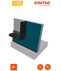 Herramiento interactiva que muestra el panel Aislawall Yeso Cartón en un modelo 3D, animado con un proceso de instalación esquemática y acercamientos a puntos de interés clave de su montaje.